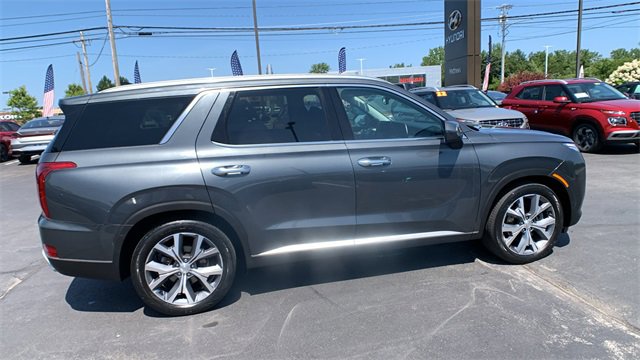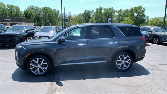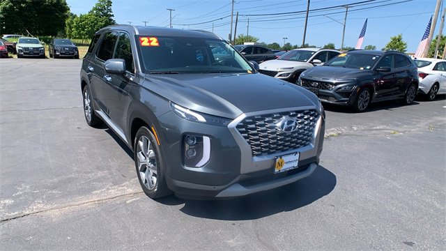 Certified. Steel Graphite 2022 Hyundai Palisade SEL AWD 8-Speed Automatic with SHIFTRONIC V6 115-Volt AC Power Outlet, 3.648 Axle Ratio, 3rd row seats: split-bench, 3rd Row USB Outlets, 4-Wheel Disc Brakes, 6 Speakers, 7" High-Resolution Cluster Display, 8-Way Power Passenger Seat, ABS brakes, Acoustic Front Side Glass, Air Conditioning, Alloy wheels, AM/FM radio, Apple CarPlay & Android Auto, Auto High-beam Headlights, Auto Leveling Rear Suspension, Auto-dimming Rear-View mirror, Automatic temperature control, Brake assist, Bumpers: body-color, Cargo Cover/Screen, Cargo Net, Carpeted Floor Mats, Cloth Seat Trim, Convenience Package P2, Delay-off headlights, Driver door bin, Driver vanity mirror, Driver's Seat Integrated Memory System, Dual front impact airbags, Dual front side impact airbags, Electronic Stability Control, First Aid Kit, Four wheel independent suspension, Front anti-roll bar, Front Bucket Seats, Front Center Armrest, Front dual zone A/C, Front Parking Sensors, Front reading lights, Fully automatic headlights, Garage door transmitter: HomeLink, Hands-Free Smart Liftgate, Heated 2nd Row Seats, Heated door mirrors, Heated Front Bucket Seats, Heated front seats, Heated Steering Wheel, Highway Drive Assist I, Illuminated entry, Knee airbag, Leather Seat Trim, LED Taillights, Low tire pressure warning, Occupant sensing airbag, Outside temperature display, Overhead airbag, Overhead console, Panic alarm, Passenger door bin, Passenger vanity mirror, Power 3rd Row Seating, Power door mirrors, Power driver seat, Power moonroof, Power steering, Power windows, Premium Dashboard & Door Armrests, Premium Package, Premium Package P3, Radio data system, Radio: AM/FM/MP3 Display Audio, Radio: AM/FM/MP3 Premium Audio System, Rear air conditioning, Rear anti-roll bar, Rear audio controls, Rear reading lights, Rear Side Window Sunshades, Rear window defroster, Rear window wiper, Reclining 3rd row seat, Remote keyless entry, Security system, Speed control, Speed-sensing steering, Split folding rear seat, Spoiler, Steering wheel mounted audio controls, Tachometer, Telescoping steering wheel, Tilt steering wheel, Traction control, Trip computer, Turn signal indicator mirrors, Ultrasonic Rear Occupant Alert, Variably intermittent wipers, Wheel Locks, Wheels: 18" x 7.5J Machine Finish Alloy, Wheels: 20" x 7.5J Split 5-Spoke Machined Alloy, Wireless Phone Charger.