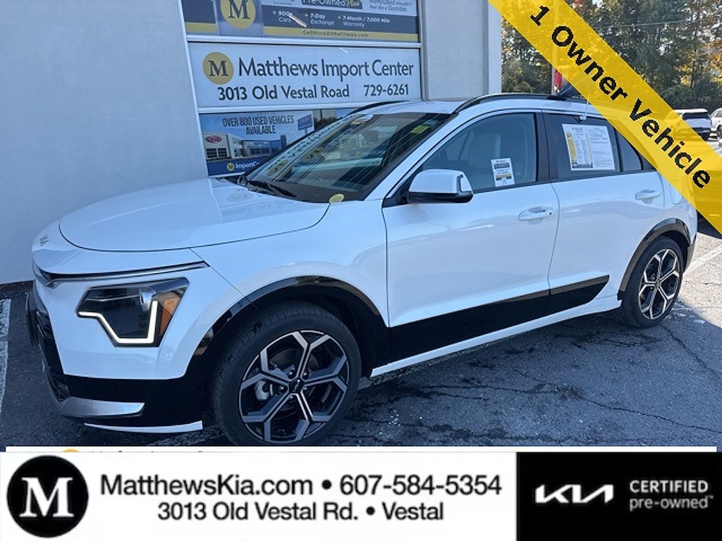 "Matthews Import Center promises each customer a thorough and confident 120-point inspection on our used inventory guaranteeing a relaxing and peace-of-mind experience. We are located behind Lowes in Vestal NY. Or call us at (607) 729 - 6261Matthews Import Center3013 Old Vestal RoadVestal NY 13850. Certified. Snow White Pearl 2024 Kia EX Touring Niro FWD 6-Speed Automatic 1.6L I4 DGI Hybrid DOHC 16V LEV3-SULEV3053/45 City/Highway MPGKia Certified Pre-Owned Details: * 165 Point Inspection * Transferable Warranty * Powertrain Limited Warranty: 120 Month/100000 Mile (whichever comes first) from original in-service date * Vehicle History * Limited Warranty: 12 Month/12000 Mile (whichever comes first) ""Platinum Coverage""from certified purchase date * Roadside Assistance * Warranty Deductible: $50 * Includes Rental Car and Trip Interruption Reimbursement. 3 month Sirius trial subscription"