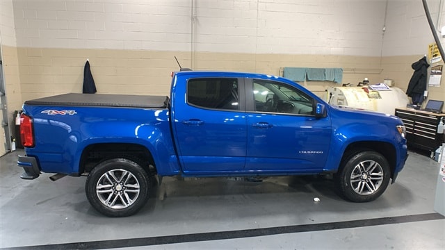 Bright Blue Metallic 2022 Chevrolet Colorado Work Truck 4WD 8-Speed Automatic V6 4WD, 3.42 Rear Axle Ratio, 4-Wheel Disc Brakes, 6 Speakers, 6-Speaker Audio System Feature, ABS brakes, Air Conditioning, AM/FM radio: SiriusXM, Apple CarPlay/Android Auto, Black Bowtie Emblem Package (LPO), Body-Color Door Handles, Bumpers: body-color, Custom Special Edition, Delay-off headlights, Driver 4-Way Power Seat Adjuster, Driver door bin, Dual front impact airbags, Dual front side impact airbags, Electronic Automatic Cruise Control, Electronic Stability Control, Extended Range Remote Keyless Entry, Exterior Parking Camera Rear, EZ-Lift & Lower Tailgate, Front anti-roll bar, Front Bucket Seats, Front Center Armrest, Front License Plate Kit, Front wheel independent suspension, Fully automatic headlights, Low tire pressure warning, Occupant sensing airbag, Outside Power-Adjustable Body-Color Mirrors, Overhead airbag, Passenger door bin, Passenger vanity mirror, Power driver seat, Power steering, Power windows, Preferred Equipment Group 4WT, Premium audio system: Chevrolet Infotainment 3, Radio data system, Radio: Chevrolet Infotainment 3 System, Rear Body-Color Bumper, Rear seat center armrest, Rear step bumper, Remote Locking Tailgate, SiriusXM Radio, Speed-sensing steering, Spotter Mirror, Tachometer, Tilt steering wheel, Traction control, Trip computer, Unauthorized Entry Theft-Deterrent System, Variably intermittent wipers, Vinyl Seat Trim, Wheel Locks, Wheels: 17" x 8" Ultra Silver Metallic Steel, Wheels: 18" x 8.5" Dark Argent Metallic Cast Alloy, WT Convenience Package.
