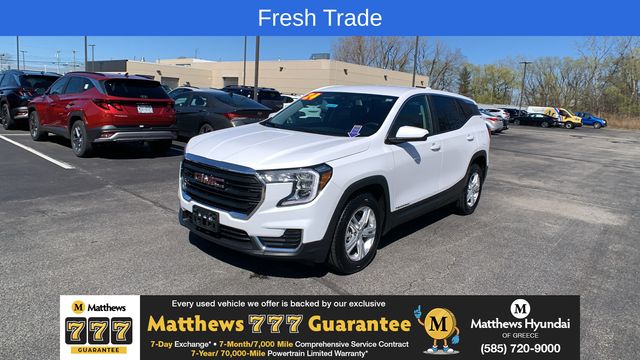 Summit White 2024 GMC Terrain SLE FWD 9-Speed Automatic 1.5L DOHC 2 USB Data Ports w/Auxiliary Input Jack, 3.47 Final Drive Axle Ratio, 4-Way Manual Driver's Seat, 4-Way Manual Front Passenger Seat, 4-Wheel Disc Brakes, 4.2" Multi-Color Driver Information Screen, 6 Speakers, 6-Speaker Audio System Feature, ABS brakes, Air Conditioning, Alloy wheels, AM/FM radio: SiriusXM, Auto High-beam Headlights, Auto-dimming Rear-View mirror, Automatic temperature control, Bluetooth® For Phone, Brake assist, Bumpers: body-color, Compass, Delay-off headlights, Deleted 3 Years of Remote Access, Driver door bin, Driver vanity mirror, Dual front impact airbags, Dual front side impact airbags, Electronic Stability Control, Emergency communication system: OnStar and GMC connected services capable, Four wheel independent suspension, Front anti-roll bar, Front Bucket Seats, Front Center Armrest, Front reading lights, Fully automatic headlights, Heated door mirrors, Illuminated entry, License Plate Front Mounting Package, Low tire pressure warning, Occupant sensing airbag, Outside temperature display, Overhead airbag, Overhead console, Panic alarm, Passenger door bin, Passenger vanity mirror, Power door mirrors, Power steering, Power windows, Preferred Equipment Group 3SA, Premium Cloth Seat Trim, Radio data system, Radio: GMC Infotainment Audio System w/7" Display, Rear anti-roll bar, Rear seat center armrest, Rear window defroster, Rear window wiper, Remote keyless entry, Security system, SiriusXM, Speed control, Speed-sensing steering, Split folding rear seat, Spoiler, Steering wheel mounted audio controls, Tachometer, Telescoping steering wheel, Tilt steering wheel, Traction control, Trip computer, Variably intermittent wipers, Wheels: 17" x 7" Silver Painted Aluminum, Wireless Apple CarPlay/Wireless Android Auto.