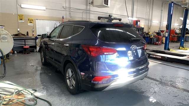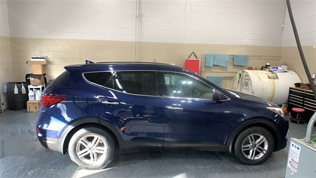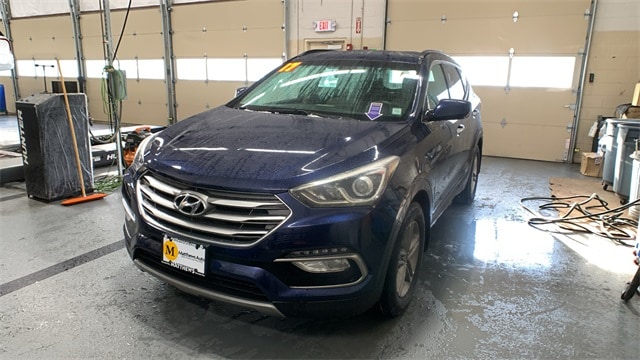 Nightfall Blue 2017 Hyundai Santa Fe Sport 2.4 Base AWD 6-Speed Automatic with Shiftronic 2.4L I4 DGI DOHC 16V 17" x 7" Alloy Wheels, 2.4L Popular Equipment Package 02, 4-Wheel Disc Brakes, 6 Speakers, ABS brakes, Air Conditioning, Alloy wheels, AM/FM radio: SiriusXM, Axle Ratio 3.648, Brake assist, Bumper Applique, Bumpers: body-color, Cargo Cover, Cargo Package, Carpeted Floor Mats, CD player, Delay-off headlights, Driver door bin, Driver vanity mirror, Dual front impact airbags, Dual front side impact airbags, Dual Zone Automatic Temperature Control, Electronic Stability Control, Exterior Parking Camera Rear, Fog Lights, Four wheel independent suspension, Front anti-roll bar, Front Bucket Seats, Front Center Armrest, Front reading lights, Fully automatic headlights, Heated door mirrors, Illuminated entry, Knee airbag, LED Daytime Running Lights, Low tire pressure warning, Mudguards, Multi-Adjustable Bucket Seats, Occupant sensing airbag, Option Group 02, Outside temperature display, Overhead airbag, Overhead console, Panic alarm, Passenger door bin, Passenger vanity mirror, Power door mirrors, Power Driver Seat w/Lumbar Support, Power steering, Power windows, Radio: AM/FM/SiriusXM/CD/HD/MP3 Display Audio, Radio: AM/FM/SiriusXM/CD/MP3 Audio System, Rear anti-roll bar, Rear seat center armrest, Rear window defroster, Rear window wiper, Remote keyless entry, Roof Side Rails, Security system, Speed control, Speed-sensing steering, Split folding rear seat, Spoiler, Stain-Resistant Cloth Seating Surfaces, Steering wheel mounted audio controls, Tachometer, Telescoping steering wheel, Tilt steering wheel, Traction control, Trip computer, Variably intermittent wipers, Wheel Locks.