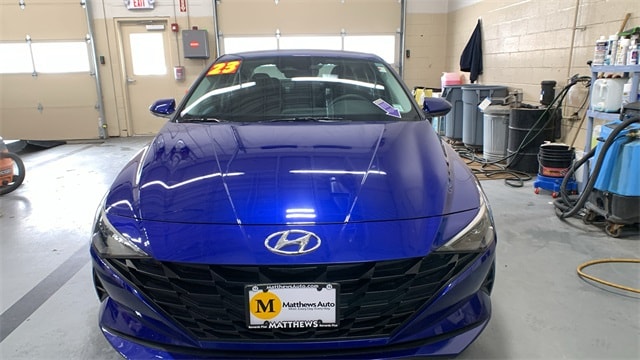 Intense Blue 2023 Hyundai Elantra SEL FWD CVT I4 16" x 6.5J Alloy Wheels, 4-Wheel Disc Brakes, 6 Speakers, ABS brakes, Air Conditioning, Alloy wheels, AM/FM radio: SiriusXM, Apple CarPlay & Android Auto, Auto High-beam Headlights, Automatic temperature control, Brake assist, Bumpers: body-color, Cargo Net, Carpeted Floor Mats, Cloth Seat Trim, Delay-off headlights, Driver door bin, Driver vanity mirror, Dual front impact airbags, Dual front side impact airbags, Electronic Stability Control, Emergency communication system: Blue Link Connected Car Service (3-year complimentary subscription), Exterior Parking Camera Rear, Front anti-roll bar, Front Bucket Seats, Front Center Armrest, Front dual zone A/C, Front reading lights, Front wheel independent suspension, Fully automatic headlights, Illuminated entry, Low tire pressure warning, Occupant sensing airbag, Option Group 01, Outside temperature display, Overhead airbag, Overhead console, Panic alarm, Passenger door bin, Passenger vanity mirror, Power door mirrors, Power steering, Power windows, Radio: AM/FM/HD/SiriusXM Display Audio, Rear window defroster, Remote keyless entry, Reversible Cargo Tray, Security system, Speed control, Speed-sensing steering, Steering wheel mounted audio controls, Tachometer, Telescoping steering wheel, Tilt steering wheel, Traction control, Trip computer, Variably intermittent wipers, Wheel Locks.