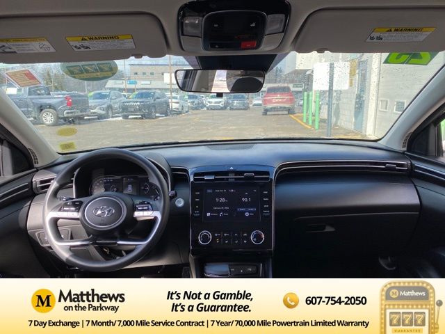 Our 2023 Hyundai Tucson SEL is sleek in Phantom Black! This stylish SUV is smooth and responsive with a 2.5L engine. The interior cabin is comfortable inside with plush seats and legroom. Fit for daily commutes or weekend road trips.