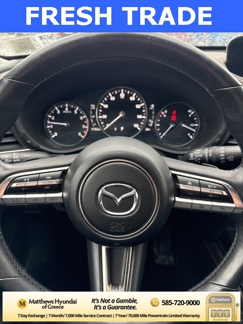 Snowflake White Pearl Mica 2023 Mazda CX-30 2.5 Turbo Premium Plus Package AWD 6-Speed Automatic 2.5L I4 12 Speakers, 3.841 Axle Ratio, 4-Wheel Disc Brakes, ABS brakes, Air Conditioning, Alloy wheels, AM/FM radio: SiriusXM, AppLink/Apple CarPlay and Android Auto, Auto High-beam Headlights, Auto-dimming door mirrors, Auto-dimming Rear-View mirror, Automatic temperature control, Brake assist, Bumpers: body-color, Compass, Delay-off headlights, Driver door bin, Driver vanity mirror, Dual front impact airbags, Dual front side impact airbags, Electronic Stability Control, Emergency communication system: Mazda Connected Services (3-year complimentary trial included), Front anti-roll bar, Front Bucket Seats, Front Center Armrest, Front dual zone A/C, Front reading lights, Front wheel independent suspension, Fully automatic headlights, Garage door transmitter: HomeLink, Heads-Up Display, Heated door mirrors, Heated Front Bucket Seats, Heated front seats, Heated steering wheel, Illuminated entry, Knee airbag, Leather Seat Trim, Leather Shift Knob, Leather steering wheel, Low tire pressure warning, MAZDA CONNECT Infotainment System, Memory seat, Navigation system: MAZDA CONNECT, Occupant sensing airbag, Outside temperature display, Overhead airbag, Overhead console, Panic alarm, Passenger door bin, Passenger vanity mirror, Power door mirrors, Power driver seat, Power Liftgate, Power moonroof, Power steering, Power windows, Radio data system, Radio: AM/FM/HD Audio System w/Mazda Navigation, Rain sensing wipers, Rear seat center armrest, Rear side impact airbag, Rear window defroster, Rear window wiper, Remote keyless entry, Snowflake White Pearl Mica Paint, Speed control, Speed-sensing steering, Split folding rear seat, Spoiler, Steering wheel mounted audio controls, Tachometer, Telescoping steering wheel, Tilt steering wheel, Traction control, Trip computer, Turn signal indicator mirrors, Variably intermittent wipers, Wheels: 18" x 7J Aluminum Alloy.
