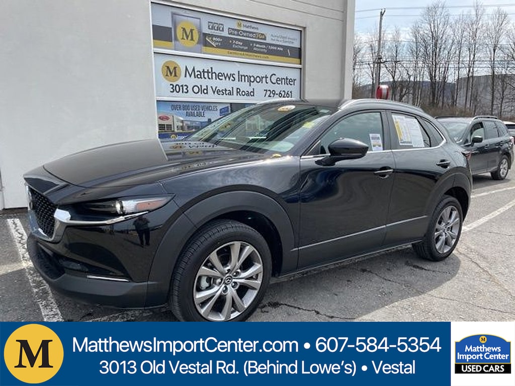 Matthews Import Center promises each customer a thorough and confident 120-point inspection on our used inventory guaranteeing a relaxing and peace-of-mind experience. We are located behind Lowes in Vestal NY. Or call us at (607) 729 - 6261Matthews Import Center3013 Old Vestal RoadVestal NY 13850. Jet Black Mica 2023 Mazda 2.5 S Select Package CX-30 AWD 6-Speed Automatic SKYACTIV® 2.5L 4-Cylinder DOHC 16VOdometer is 6491 miles below market average! 26/33 City/Highway MPG