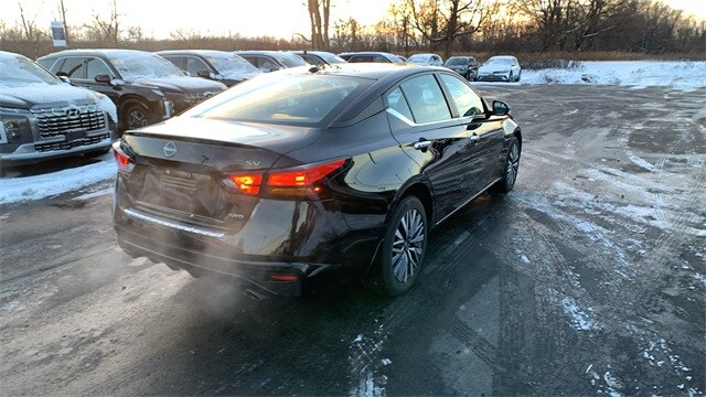 Super Black 2023 Nissan Altima 2.5 SV AWD CVT with Xtronic 2.5L 4-Cylinder DOHC 16V CVT with Xtronic, 17" Machined Alloy Wheels, 4-Wheel Disc Brakes, 6 Speakers, ABS brakes, Active Ride Control (ARC), Air Conditioning, Alloy wheels, AM/FM radio: SiriusXM, Auto High-beam Headlights, Blind Spot Warning, Body-Colored Outside Mirrors, Body-Colored Splash Guards, Brake assist, Bumpers: body-color, Chrome Bumper Protector, Cloth Seat Trim, Delay-off headlights, Driver door bin, Driver vanity mirror, Dual front impact airbags, Dual front side impact airbags, Electronic Parking Brake w/Auto-Hold, Electronic Stability Control, Exhaust Finishers, Floor Mats/Trunk Mat/Hideaway Net, Four wheel independent suspension, Front anti-roll bar, Front Bucket Seats, Front Center Armrest, Front reading lights, Fully automatic headlights, Heated Front Seats, Illuminated entry, Intelligent Cruise Control w/Full Spd Range & Hold, Intelligent Lane Intervention (I-LI), Intelligent Trace Control (I-TC), Knee airbag, Leather Shift Knob, Leather Steering Wheel, Low tire pressure warning, NissanConnect, NissanConnect featuring Apple CarPlay and Android Auto, Occupant sensing airbag, Outside temperature display, Overhead airbag, Overhead console, Panic alarm, Passenger door bin, Passenger vanity mirror, Power door mirrors, Power driver seat, Power steering, Power windows, Premium Interior Finishers, ProPILOT Assist, Radio data system, Radio: AM/FM Audio System, Rear anti-roll bar, Rear Parking Sensors, Rear reading lights, Rear seat center armrest, Rear side impact airbag, Rear window defroster, Remote keyless entry, Security system, Single Panel Moonroof, Speed control, Speed-sensing steering, Speed-Sensitive Wipers, Split folding rear seat, Steering Assist, Steering wheel mounted audio controls, SV Premium Package, Tachometer, Telescoping steering wheel, Tilt steering wheel, Traction control, Traffic Sign Recognition, Trip computer, Trunk Organizer Tray, Variably intermittent wipers.